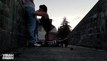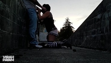 Just another day hiking in an old creepy abandoned fort. Something about secluded forests and cold stone walls makes my spine shiver and my pussy quiver! I get on my knees ready to slurp, suck and gag on his cock. Once I get him nice and hard, then he bends me over the wall and pounds my little cunt. Grabbing me by the pigtails and pounding my ass from behind wasn't enough for him. He wanted to record POV while he pounded my ass. No gas masks this time, but something tells me this little alternative industrial goth girl will be back