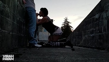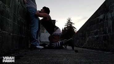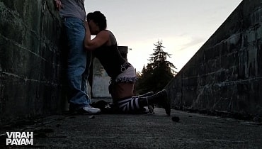 Just another day hiking in an old creepy abandoned fort. Something about secluded forests and cold stone walls makes my spine shiver and my pussy quiver! I get on my knees ready to slurp, suck and gag on his cock. Once I get him nice and hard, then he bends me over the wall and pounds my little cunt. Grabbing me by the pigtails and pounding my ass from behind wasn't enough for him. He wanted to record POV while he pounded my ass. No gas masks this time, but something tells me this little alternative industrial goth girl will be back